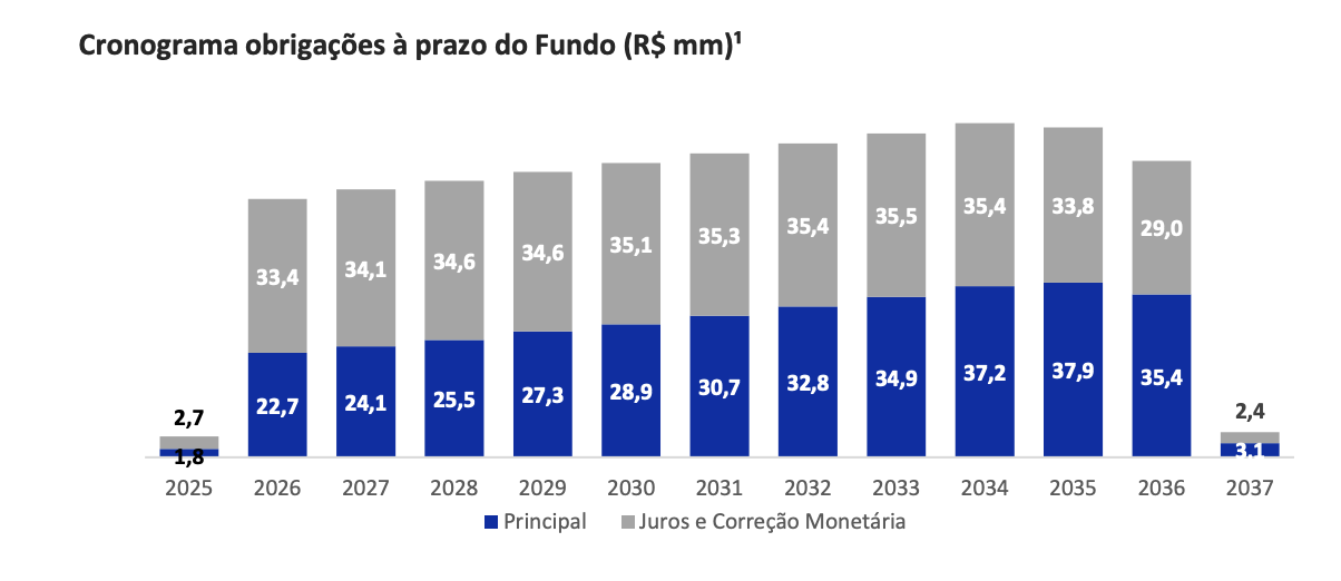 Nem tudo, porém, são flores. Um relatório do Itaú BBA chama atenção para um ponto delicado: as obrigações financeiras do fundo. São R$ 425,8 milhões previstos para os próximos anos, sendo R$ 22,3 milhões já nos próximos 12 meses. Isso tem pesado no resultado mensal. Outro risco é a localização de alguns imóveis, que ficam em áreas menos centrais, o que pode dificultar a ocupação caso algum inquilino saia.