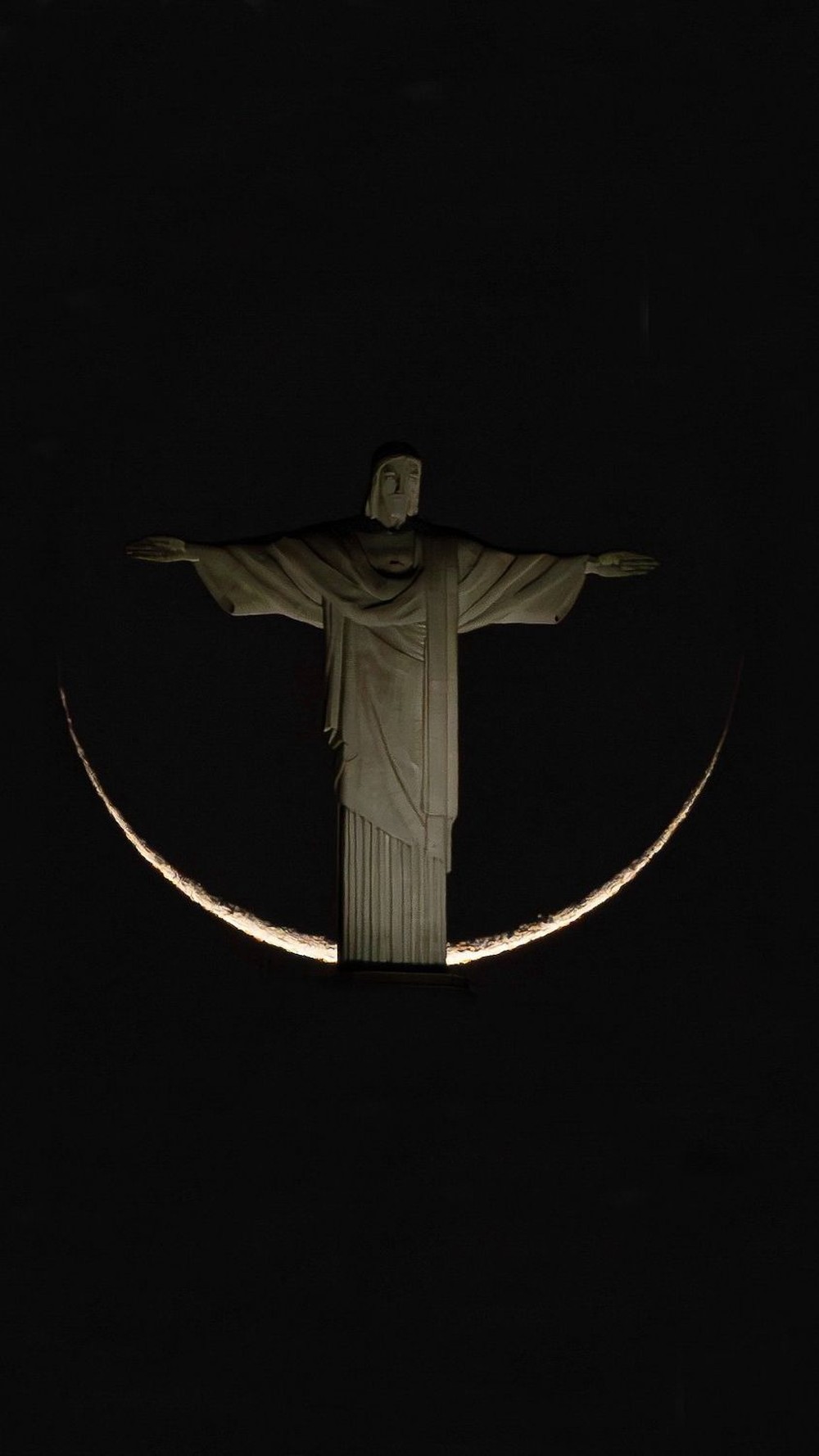 Um registro raro da lua “abraçando” o Cristo Redentor foi feito nesta sexta-feira (9) pelo fotógrafo Bruno Dulcetti , aproveitando o céu claro no Rio de Janeiro.
